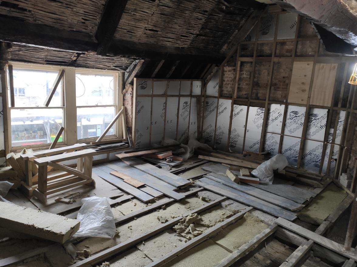 Anyone who has done a major commercial build project knows that the first stage is to peel back the layers of the building to assess its condition, make any necessary repairs and then install the new plumbing, heating, electrics, fire safety systems and fibre optic cabling and then redecorate. Unfortunately, this normally means that things get worse before they get better. In our case a lot more of the original timber structure was rotten and needed reinforcing with steel and concrete. However, we did make some amazing discoveries too.