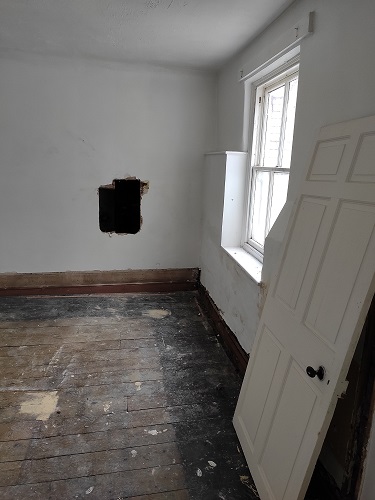 When we bought the building in 2019, it had been vacant for seven years and was in poor condition with unsafe electrics, virtually no working heating, warped floors and cracks in the wall because of rotten beams and joists causing the building to move. Our objectives for this renovation project were to: